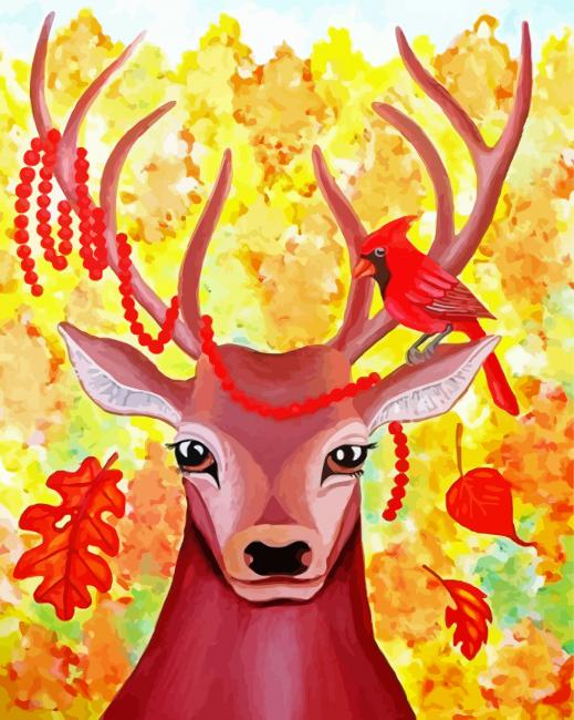 Paint By Numbers is a system where a picture is divided into shapes, each marked with a number that corresponds to a particular color. You paint in each shape and ultimately the picture emerges as a Autumn Deer With Cardinal Paint By Numbers finished painting, and the best part about Painting By Numbers is that you can paint your masterpiece with no previous painting skills and it’s suitable for all ages.